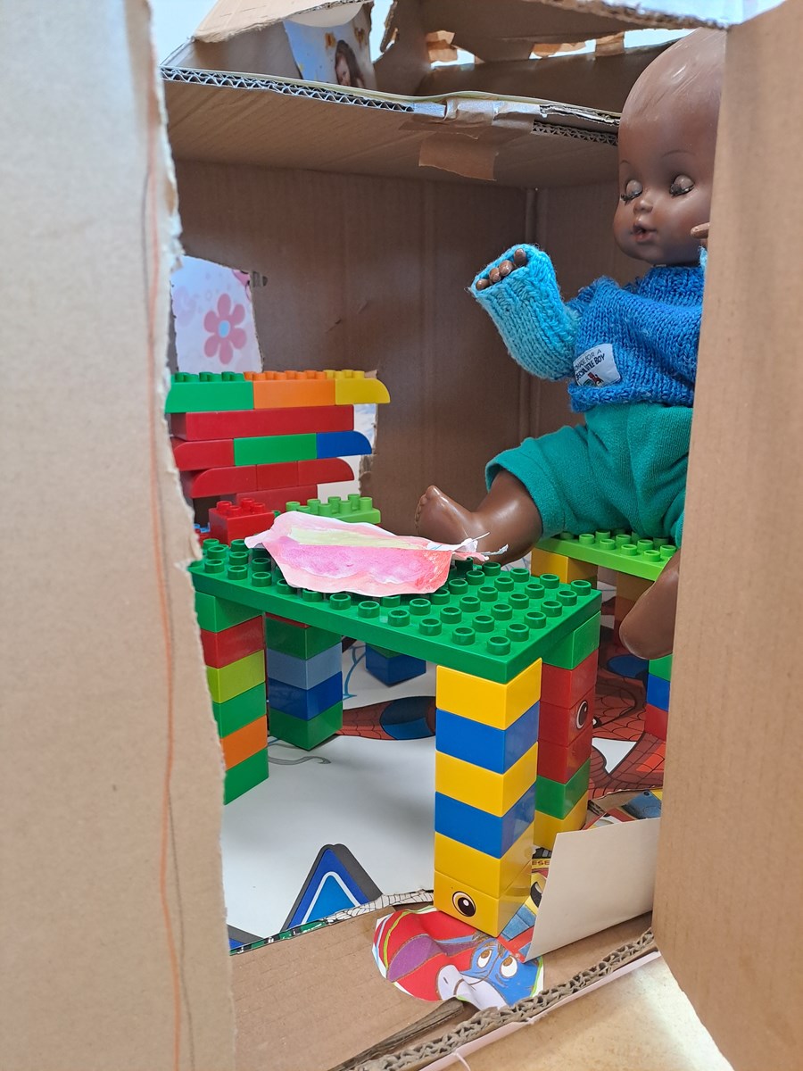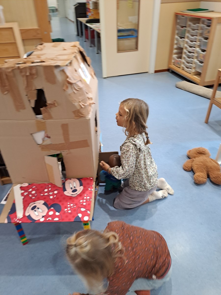 Jeroen is alleen nog niet helemaal tevreden over het plekje waar het huis nu staat. Zijn huisje staat af en toe in de weg. Daarom verhuist zijn huisje af en toe van de ene hoek in de klas naar de andere.