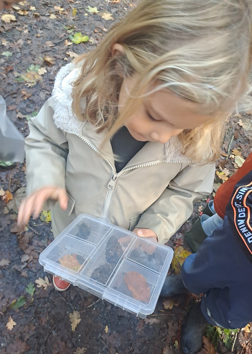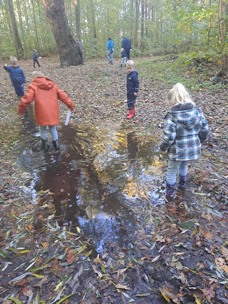Het is herfst en dat was in het Dijkgatbos goed te zien. Bladeren in rood, geel, bruin, groen en rood. We zagen allemaal paddenstoelen, zelfs de vliegenzwam: rood met witte stippen. De twee boswachters wisten ons veel over het bos te vertellen. Ze lieten ons ook allemaal spelletjes doen, zoals een bladerketting maken en met een parachute alle blaadjes weer terug richting de bomen gooien. En wist u, dat als je een beetje water over een spinnenweb spuit, dat je het web dan heel goed kunt zien? Dank jullie wel boswachters, we hebben genoten en ondertussen nog veel geleerd ook!