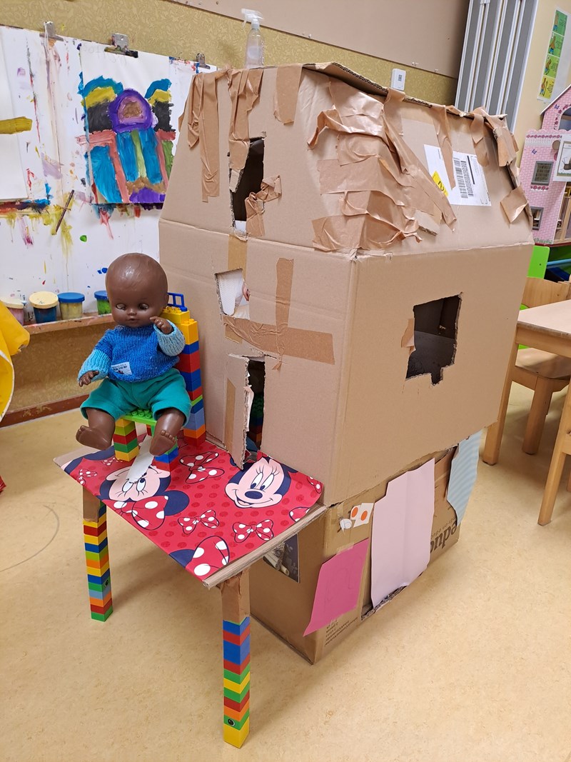 Wat hebben de kinderen er hard aan gewerkt, maar eindelijk is het huis van Jeroen klaar. Hij woont er nu al een paar dagen in en vindt het erg fijn. Hij vindt het vooral prettig dat hij nu zijn eigen keuken heeft en zijn eigen tafel en stoel en zijn eigen bed. Dat komt omdat de kinderen…