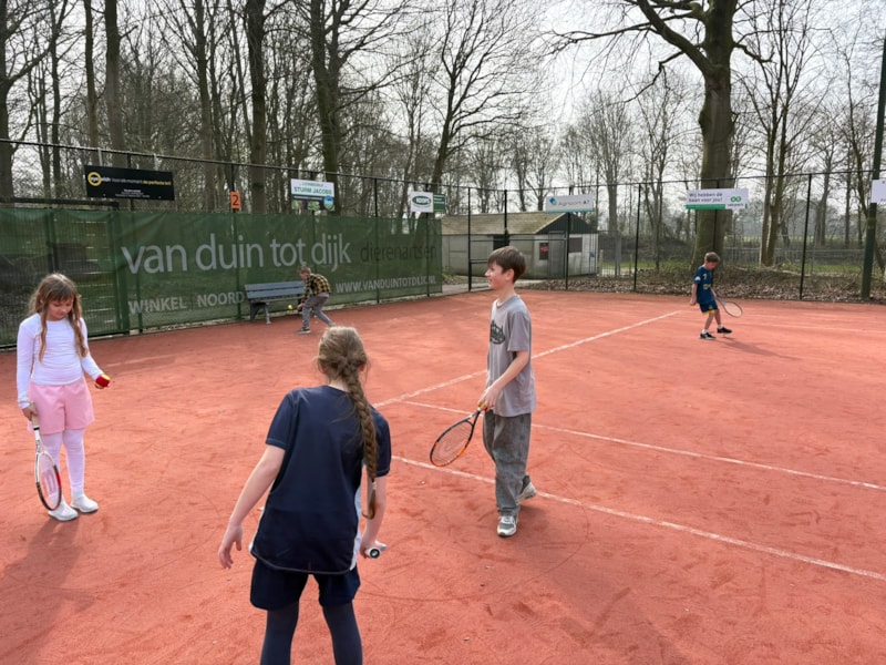 Ieder jaar worden wij uitgenodigd bij Tennisclub Middenmeer, en ook dit jaar mochten we weer langskomen! Afgelopen maandag stond de tennisles op het programma en wat hadden we geluk met het mooie weer.